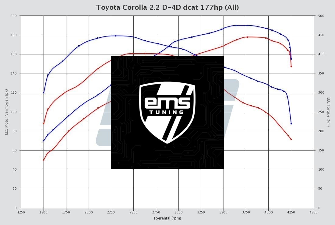 EMS Tuning is leading in the development of Toyota Corolla 2.2 D-4D dcat 177hp tuning files. The development of each Toyota Corolla 2.2 D-4D dcat 177hp tuning file is the result of perfection and dedication by EMS Tuning programmers. The organization only uses the latest technologies and has many years experience in ECU remapping software. Many (chiptuning) organizations around the globe download their tuning files for Toyota Corolla 2.2 D-4D dcat 177hp at EMS Tuning for the best possible result. All Toyota Corolla 2.2 D-4D dcat 177hp tuning files deliver the best possible performance and results within the safety margins.